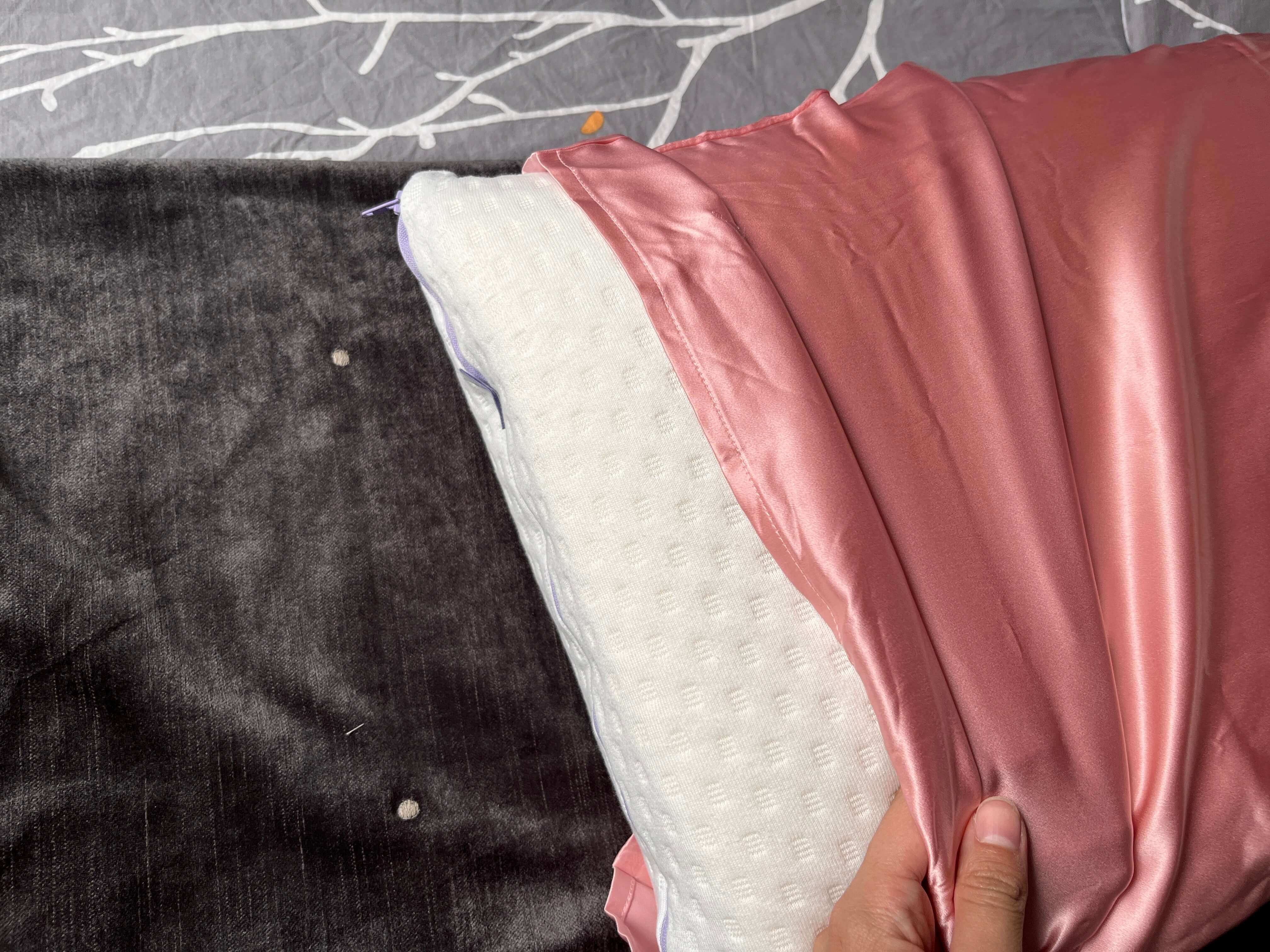 Zum Glück bietet Lilia Sleep einen Seidenkissenbezug in der Größe 70 x 50 cm an. Nach dem ersten Waschen läuft er leicht ein und sitzt dann perfekt über dem Forever Pillow.